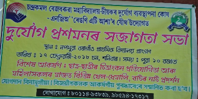 The Disaster Management Cell of the college works for creating awareness among students, local people and the college community in general about the havoc caused by natural and man-made disaster. The cell conducts various training, workshops and awareness programs to prepare students and local communities as well as faculty to meet emergency situations in collaboration with Jorhat District Civil Defence Department, Local NGO. It provides basic training to the students to ensure safety during threatening disaster situations.